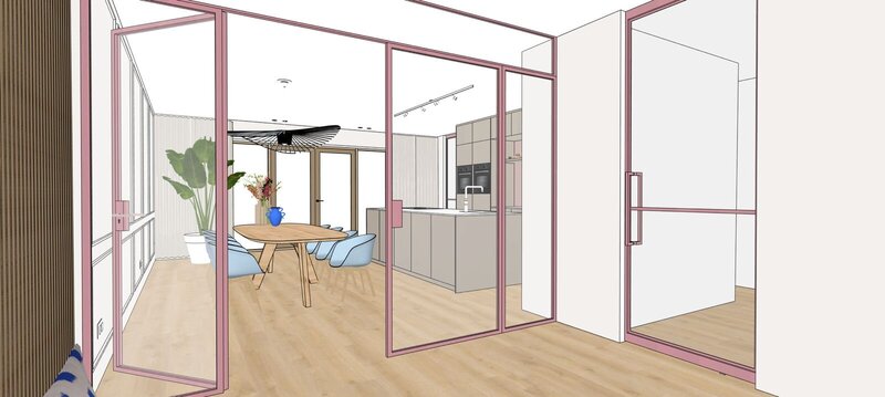Voor deze lieve klanten mocht ik een Casa Perfetta pakket uitwerken met als thema Scandi with a pink touch. En eerlijk… als je dit ziet, wil je toch ook roze deuren?